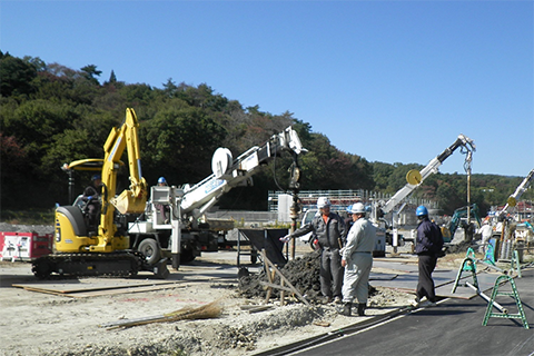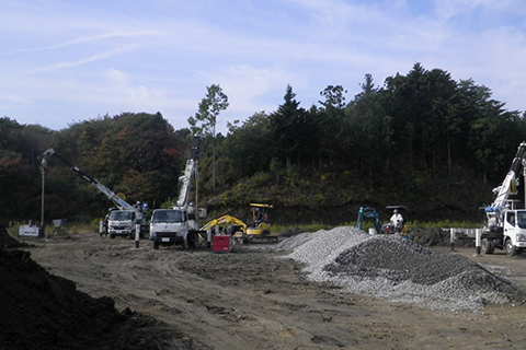 地場のいわき市で長年に渡り建設業を営む(株)渡辺組様に状況を説明したところ、HySPEED工法についての詳細な説明をして頂き、更には実際の現場でのデモを行って頂く事ができ、工期・予算・品質共に今回の現場に一番マッチした工法であることが確認できた上でこの工法の選択と渡辺組様への工事を発注する事が出来ました。また、今回の現場は農地であることから、農地法の規制により農業生産に直接必要のない構造物の設置が認められておらず、そういった意味でも天然砕石により地盤強化を行うHySPEED工法は正に今回の現場にマッチした工法と言えました。