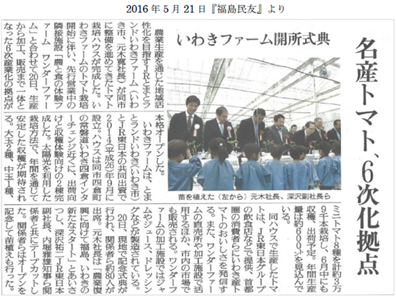 今後予定通りこの春よりトマトの苗の定植に入り、夏には首都圏や地元の市場に向けてトマトを供給していく予定です。今回建設した施設によるトマトの生産事業により、まだまだ厳しい状況が続く福島県の農業の復興に寄与し、更には併設する6次産業化施設『ワンダーファーム』と連携の元、今までに無い農業を通じた新しい取り組みを全国に向けて発信していければと思います。